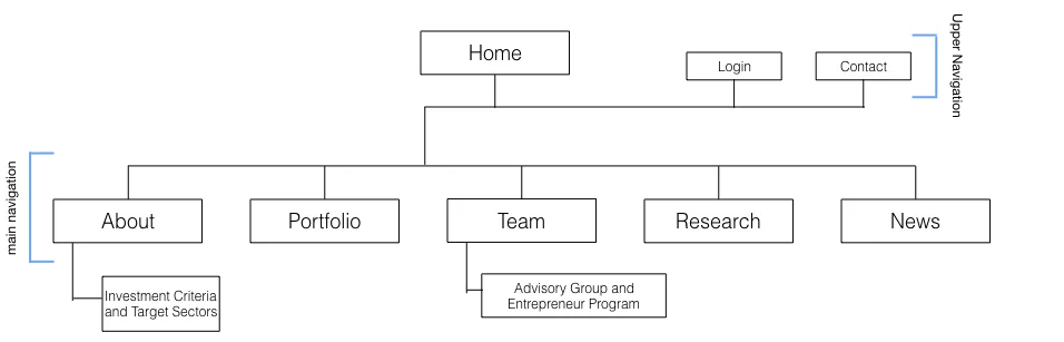 I started with a competitive and comparative analysis, followed by a Google Analytics review. I determined that the main users were CEOs and investors and created personas that illustrate the needs and goals of this group. In terms of the information architecture, my goal was to streamline the navigation and increase usability. I combined several pages that contained related content. I also separated the navigation into an upper utility navigation and a main navigation, in order to prioritize the main navigation items.